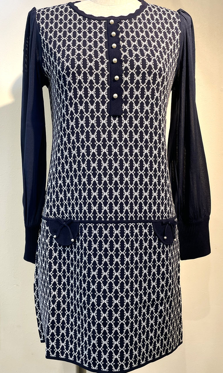 • 袖パワーネット素材、襟元フラワーモチーフ使い